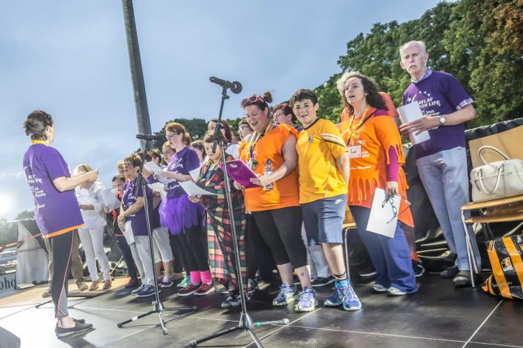 The ‘relayers’ on the track were joined by 75 cancer survivors to walk the first lap, the Lap of Honour, the traditional start to every Relay for Life. This was followed by a Carers’ Lap.