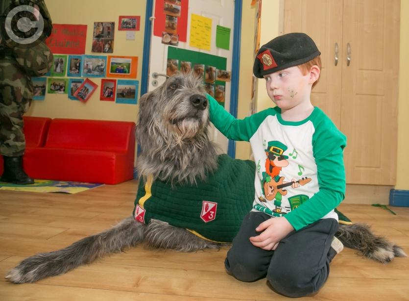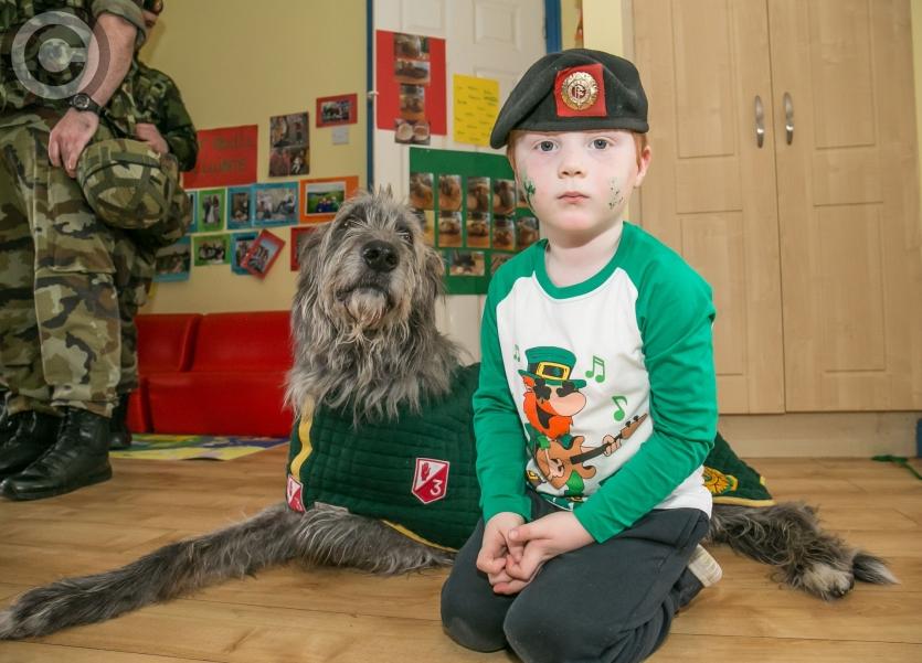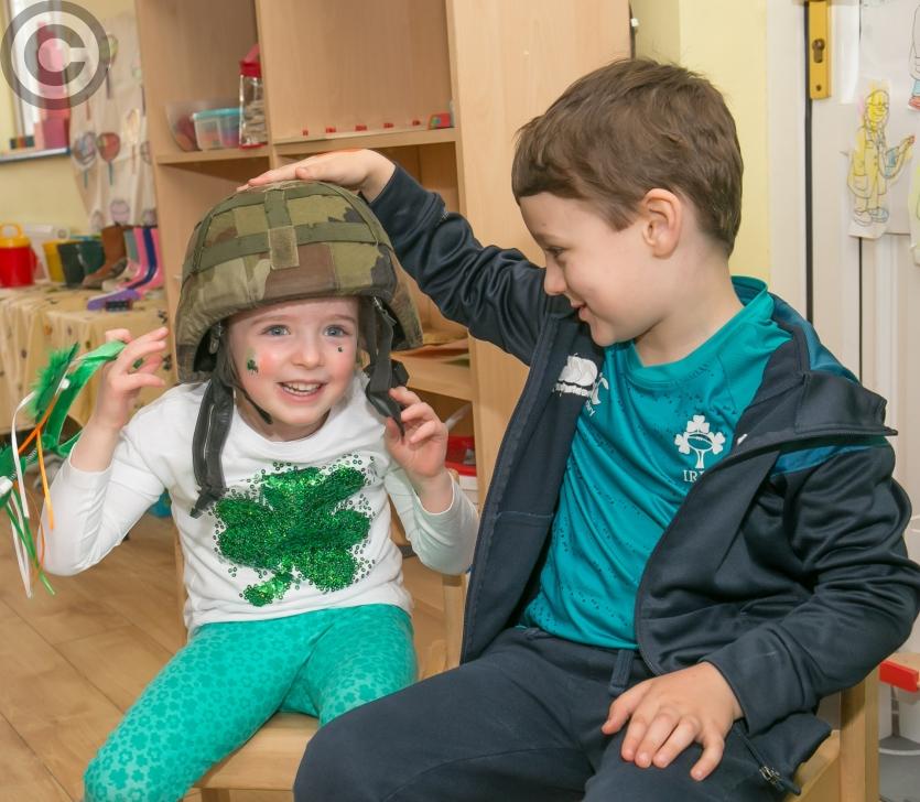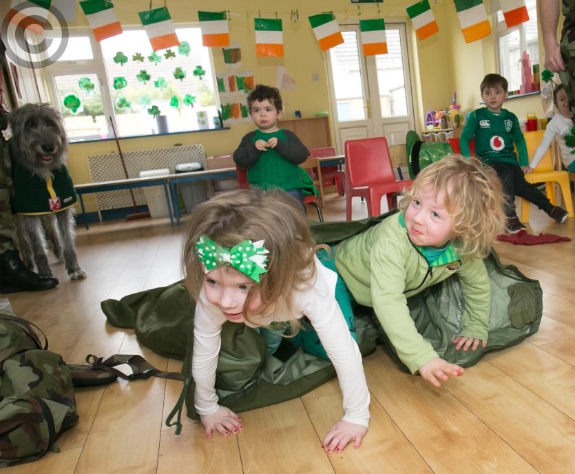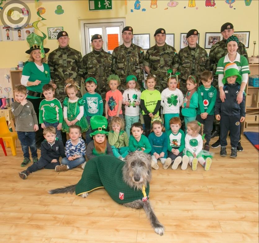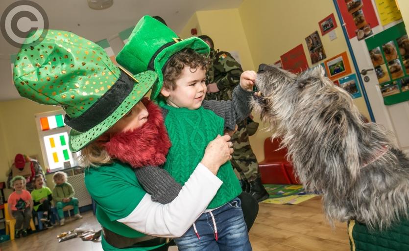 Members of the Defence Forces paid a visit to Tús Maith Naíonra in Kilkenny this morning, as part of St Patrick's Day celebrations.
