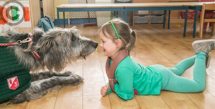 The children were all dressed in green, and had their own Parade. Special guest was Fionn the Wolfhound from the James Stephens Barracks.