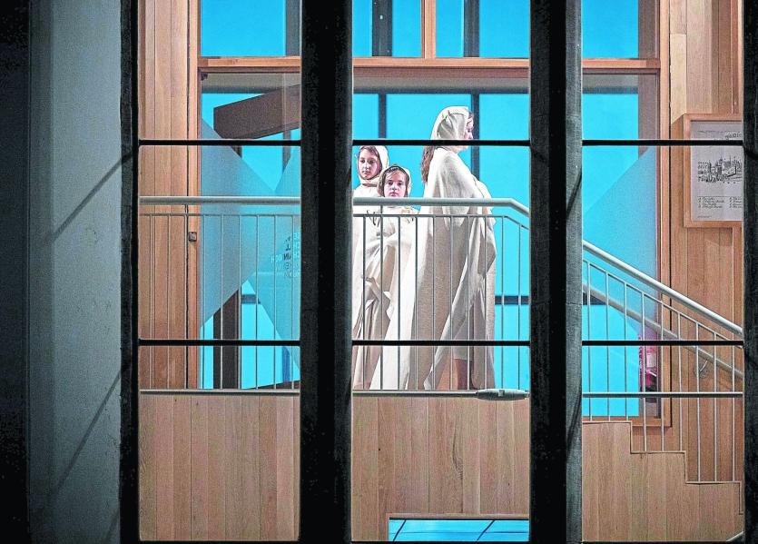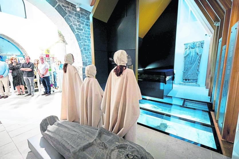 The lights dimmed and representatives from Jesters Stage Academy - Marie Cashin, Laurie Moylan and Isabel Hayden - walked through the museum in burial robes, representing the spirits of the women of the exhibition. They held hands in front of the exhibit before removing the covers to reveal the remains.