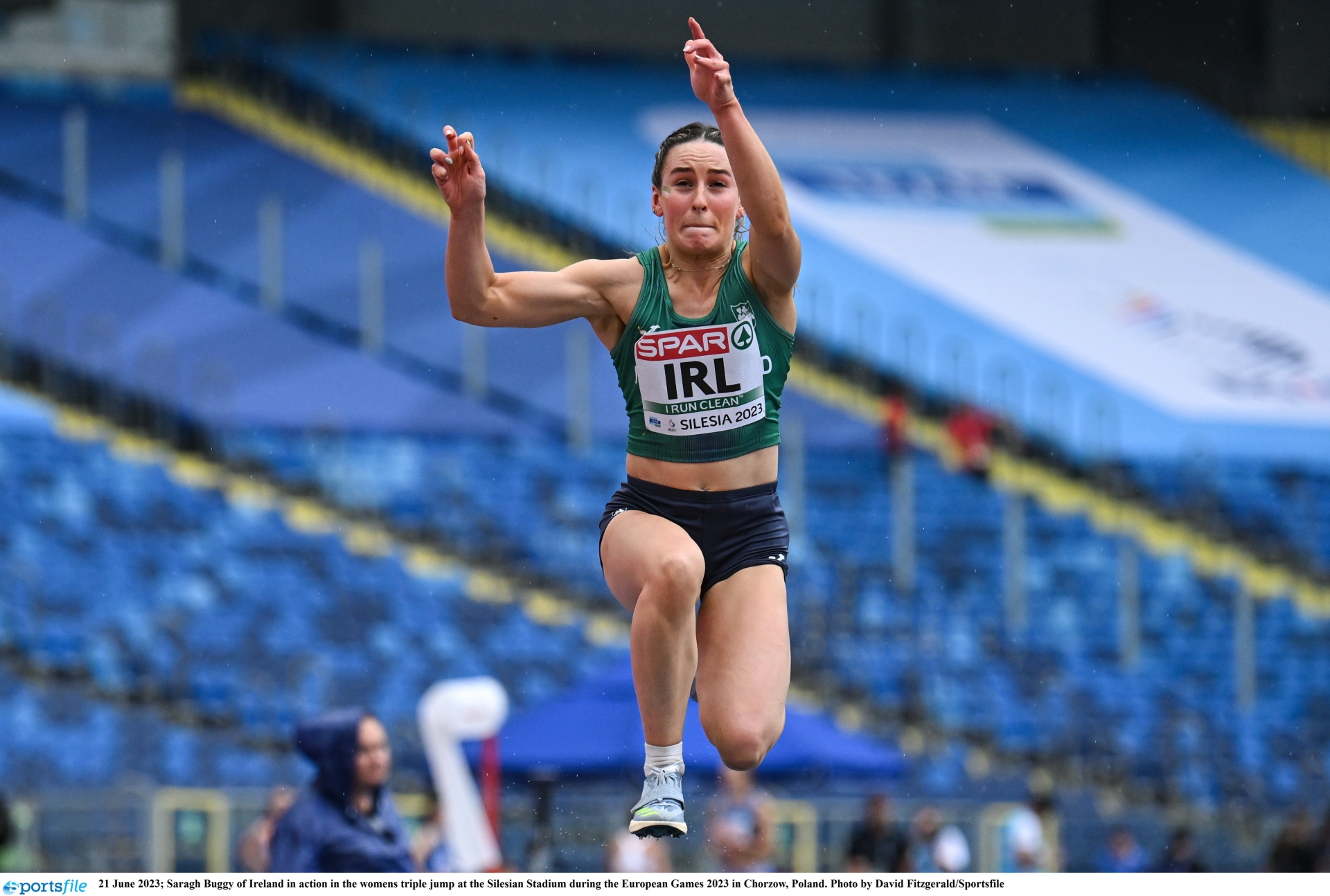 Saragh Buggy of Ireland in action in the women's triple jump at the Silesian Stadium during the European Games 2023 in Chorzow, Poland PICTURE: David Fitzgerald/Sportsfile
