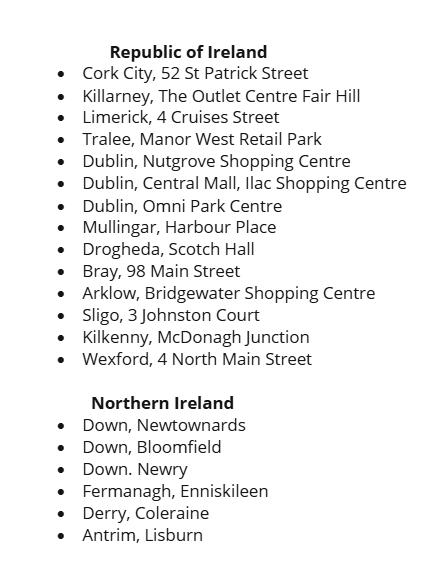 All stores not purchased are still currently open except the Claire's on Cruises Street in County Limerick, and it is not known yet when the stores will cease trading.