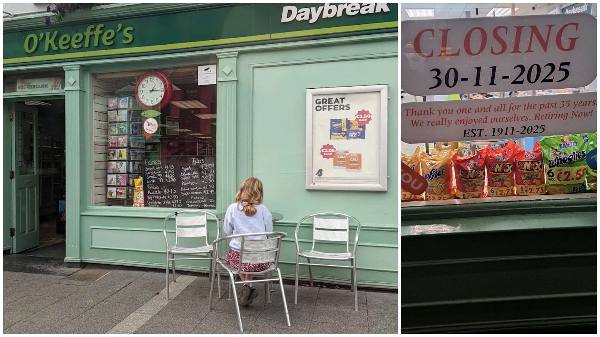 O'Keeffe's Daybreak in Thomastown confirmed the news by erecting a sign on their shopfront in recent days.