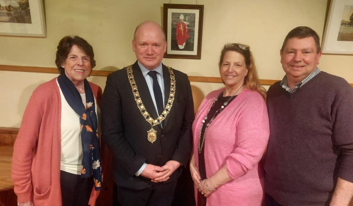 At Mary Alice Wildasin’s talk on her family geneology search that led from USA to Callan, were Danielle Doran, Mayor of Kilkenny David Fitzgerald, Mary Alice Waldasin and John Mulqueen