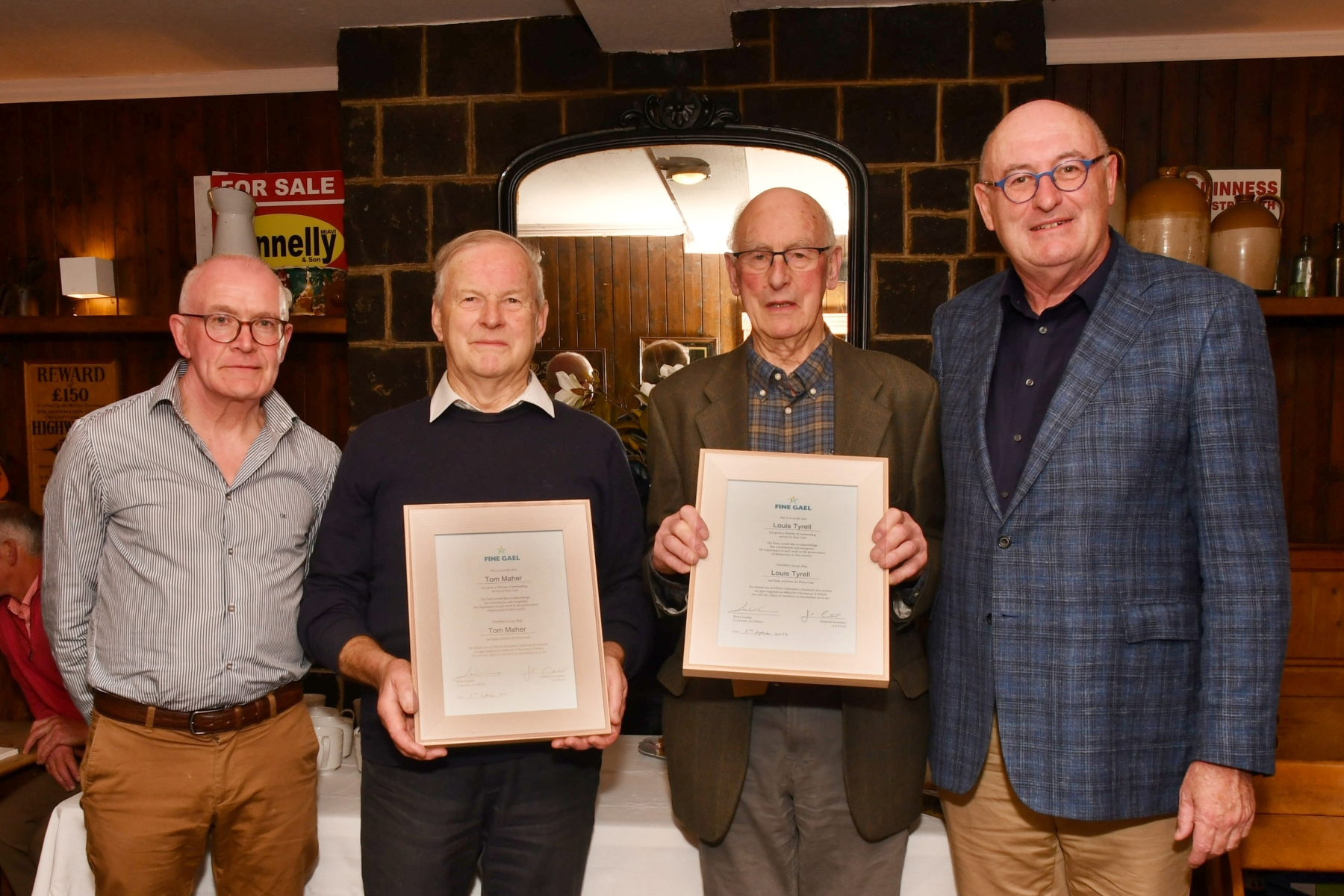 Presentations were made by former Minister and European Commissioner, Phil Hogan. Mr Hogan said he was delighted to honour Tommy and Louis with their lifetime membership, and thanked the Callan Fine Gael Branch for organising the tribute to both men.