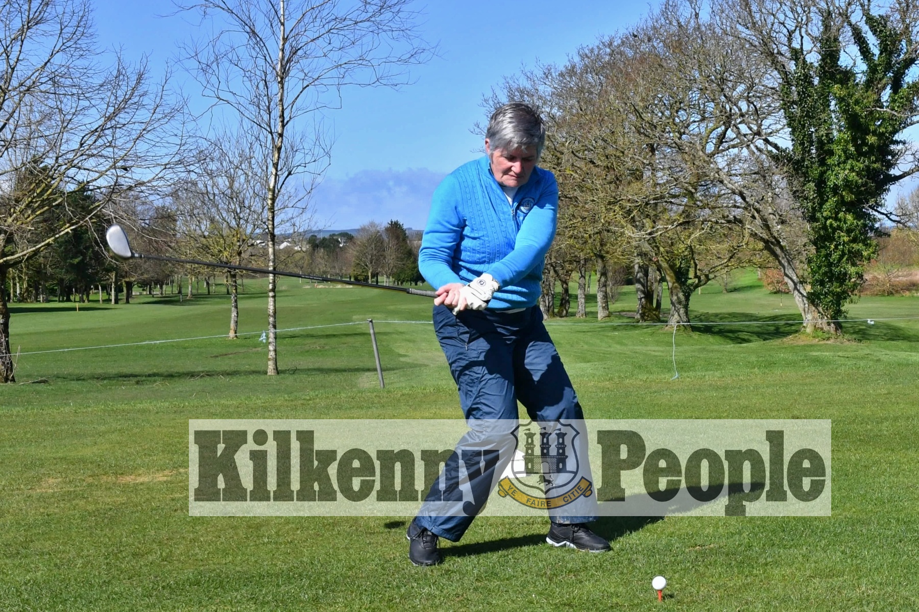 Callan Golf Club Lady Captain Bernie Lyons tees off in the Captains Drive In.