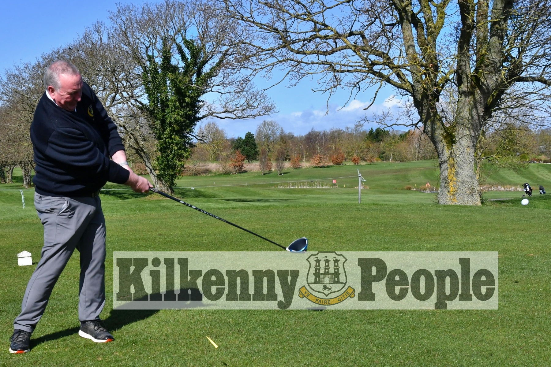 Callan Golf Club Captain Johnny Kennedy tees off in the Drive In.