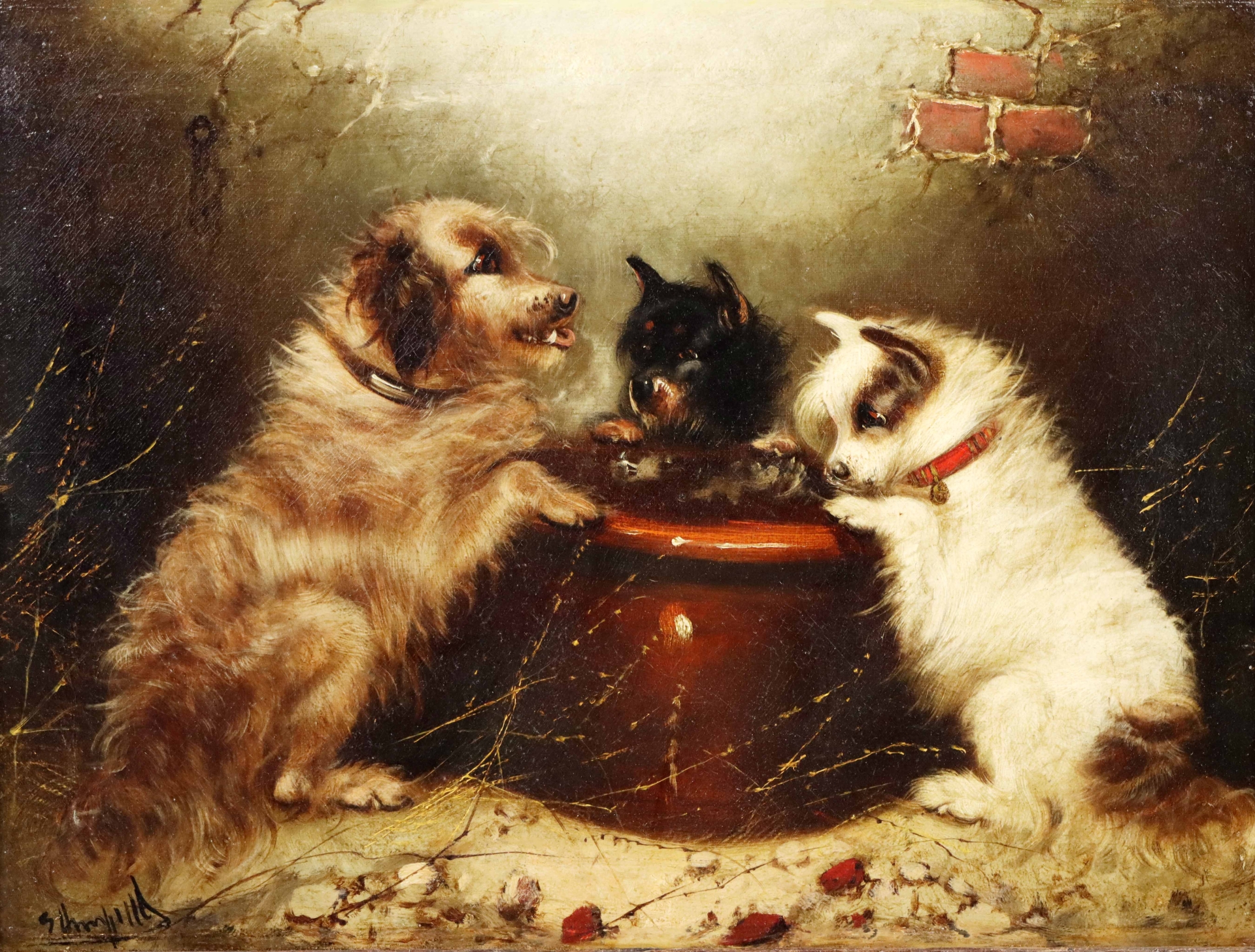 George Armfield (1808-1893) "Terriers Resting in a Stable" signed lower right, and its companion "Terriers Ratting in a Barn", a pair.