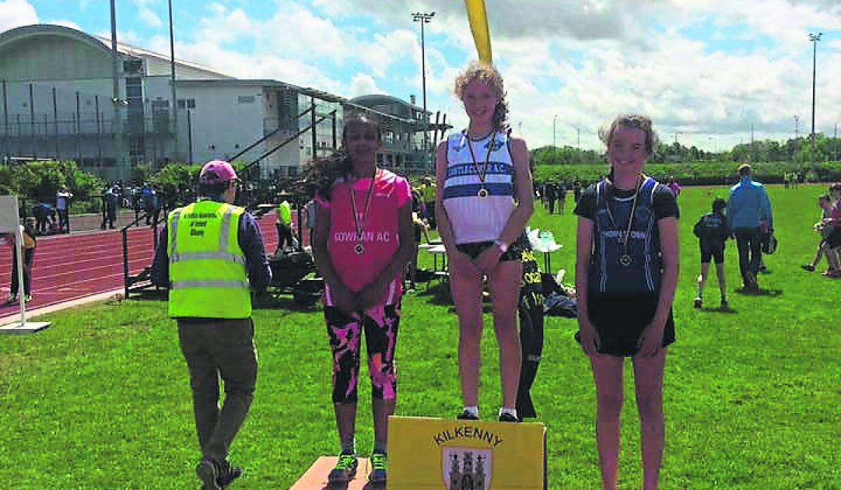 On the podium in the centre is Molly O’Dornan, Castlecomer A.C. U13 Shott Putt and 500m champion at the Kilkenny County Athletics Championships