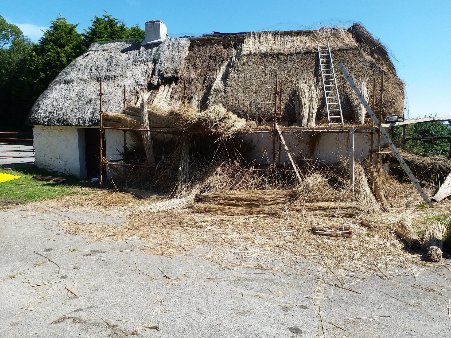 Work underway on a thatched roof