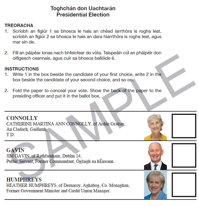 Ireland uses proportional representation (PR) for voting in elections with each voter having a single transferable vote (STV).