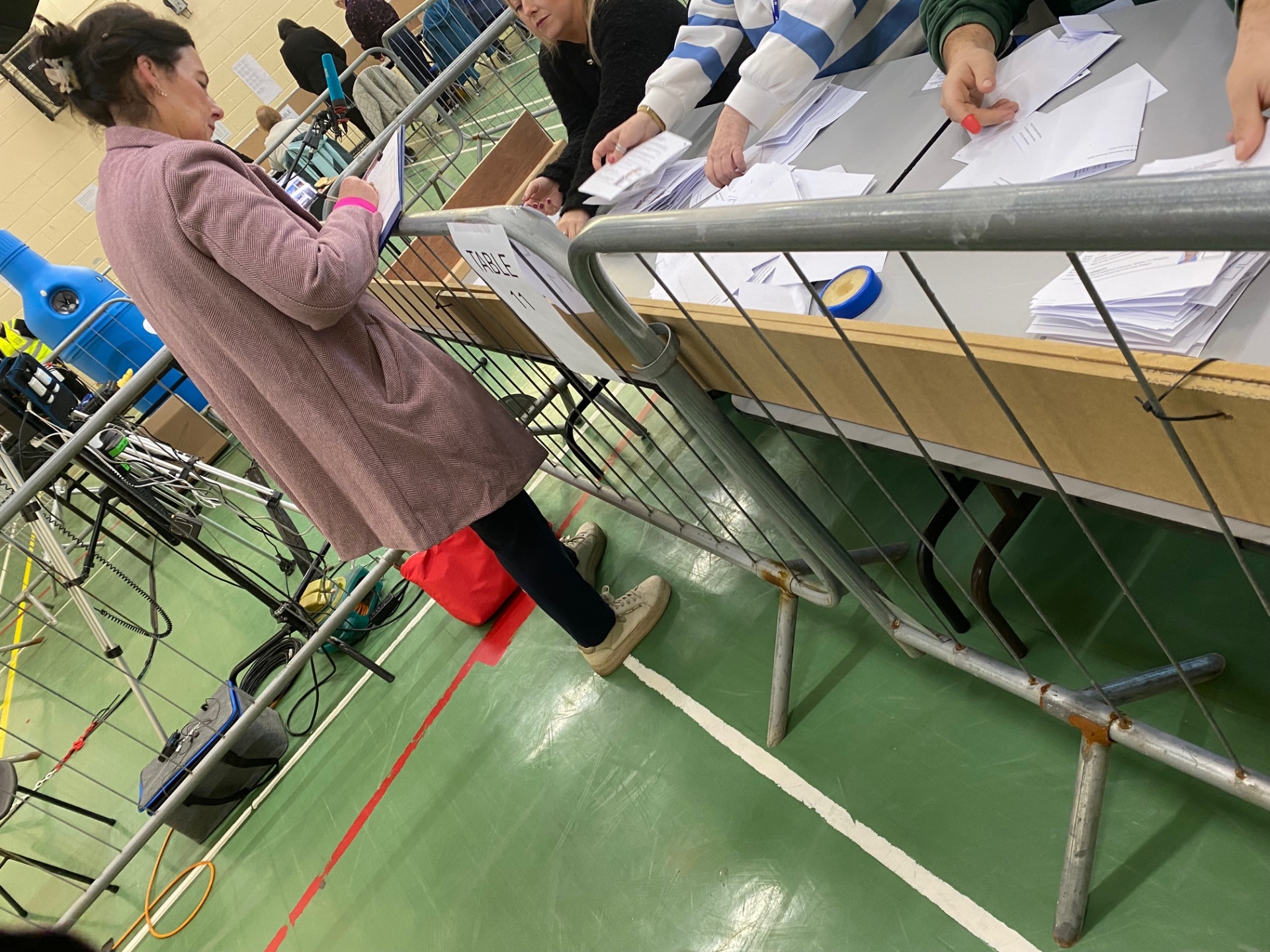 A tally is underway here at Kilkenny College, made up of a team of cross-party activists. Among them are TDs Natasha Newsome Drennan and Catherine Callaghan (below), Senator Patricia Stephenson and MEP Kathleen Funchion (main photo).