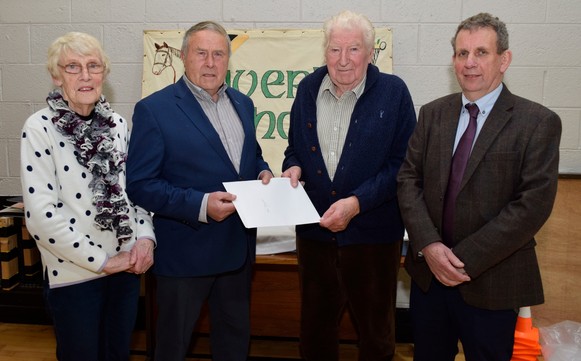 The 197th A.G.M of the Iverk Show Society took place at Piltown Community Hall on Wednesday night last, with  a packed attendance.  A presentation was made to Tom Purcell by Outgoing President of the Show Ned Walsh. Tom has served 30 years on the gate for the Iverk Show. Above: Irene Purcell, Tom Purcell, Ned Walsh and John Flynn, who was reelected as chairman for 2024. Click NEXT to continue.