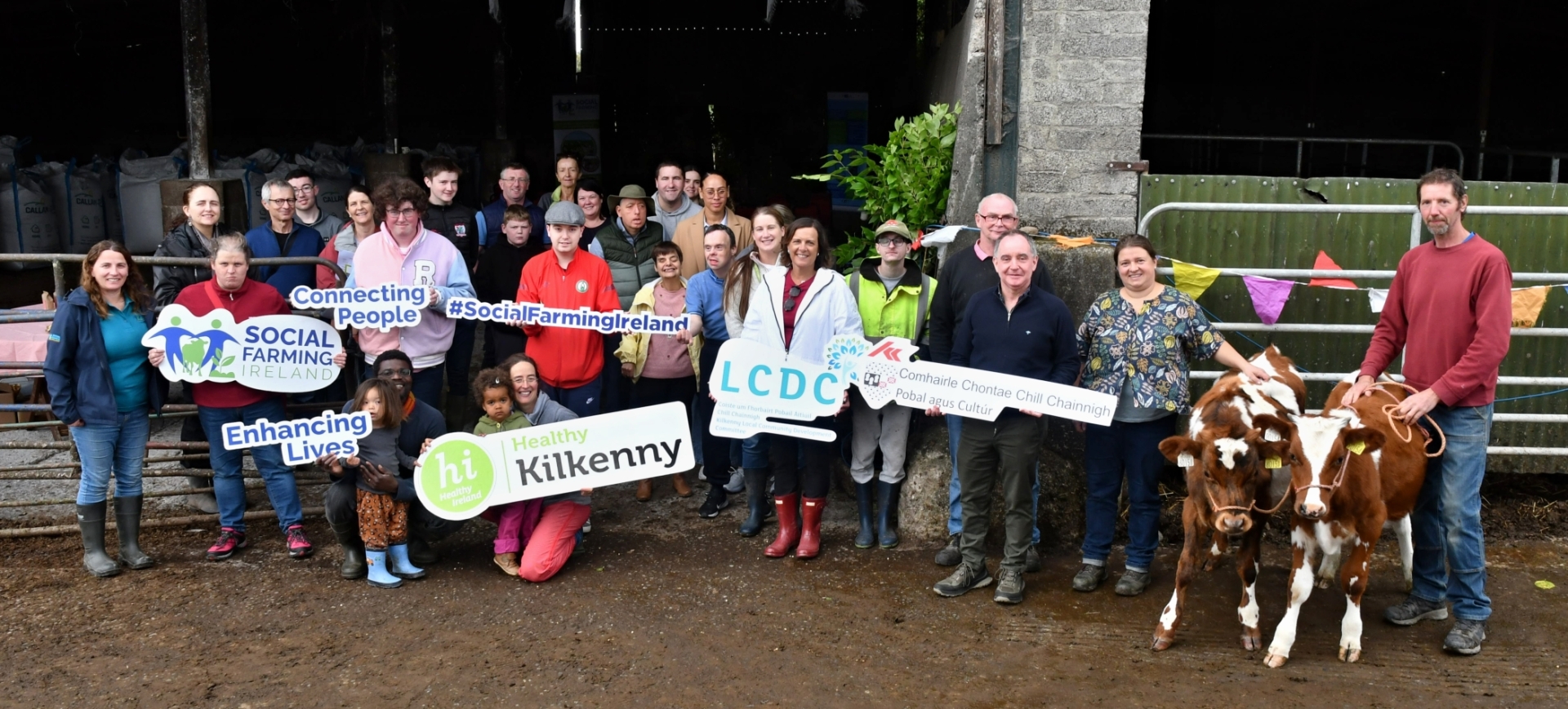 The gathering at the Ériu Farm Open Day at Jerpoint Farm.