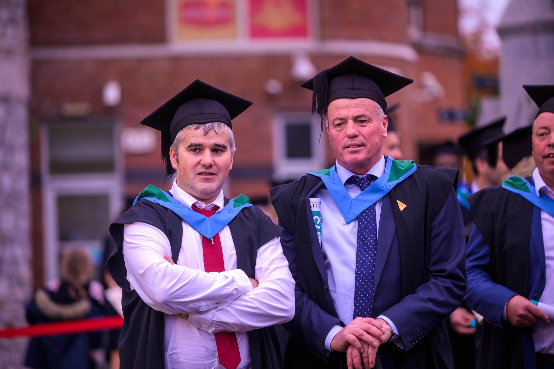 Patrick Murphy (Kilkenny) and Thomas John Meegan (Louth) pictured as the Tirlán and Baileys Sustainable Farming Academy class of 2023/2024 graduated from their Diploma in Environment, Sustainability, and Climate from University College Cork (UCC). Pic. John Allen/Provision