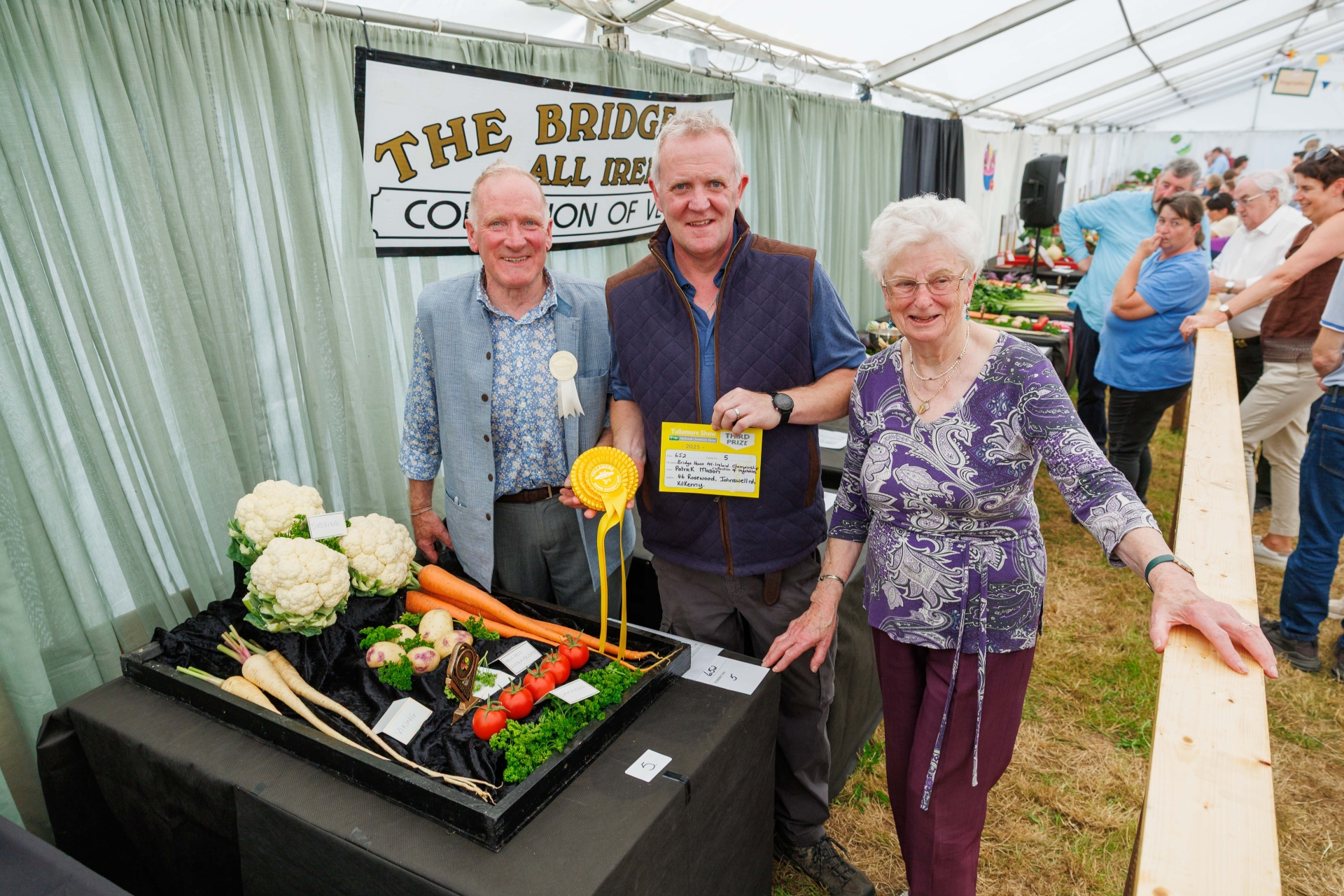 Vegetables were the star of Patrick’s third place rosette, awarded for his entry into the Bridge House All Ireland Collection of Vegetables by John Donoghue, Tullamore Show Horticulture organiser and judge Breda Condron, at the Tullamore Show and FBD National Livestock Show, on August 10 last.