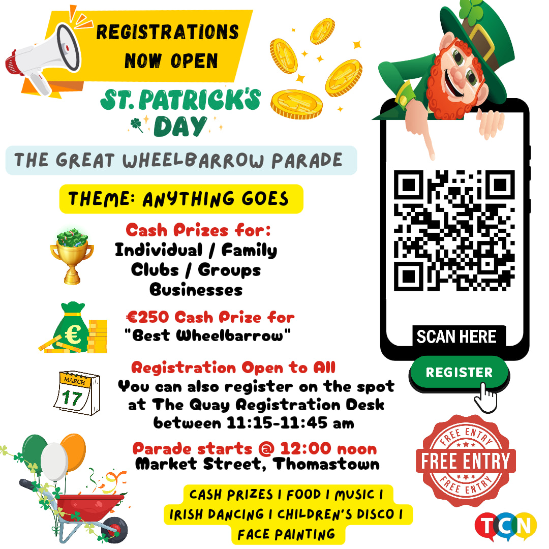 It’s time to get your head spinning and ideas rolling ahead of the annual 'wheelbarrow parade' on St Patrick's Day in Thomastown, County Kilkenny.