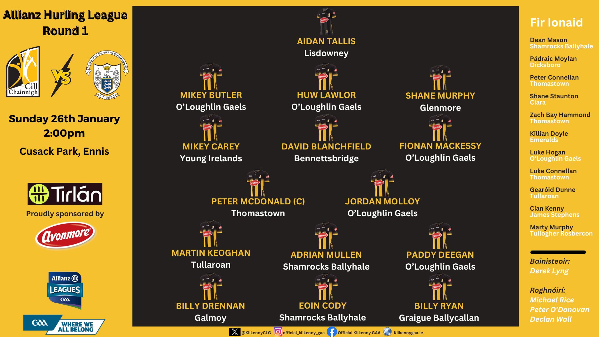 Derek Lyng has named his first competitive starting 15 of 2025 ahead of Kilkenny's trip to Cusack Park to face Clare in the first round of the Allianz Hurling League on Sunday at 2pm.