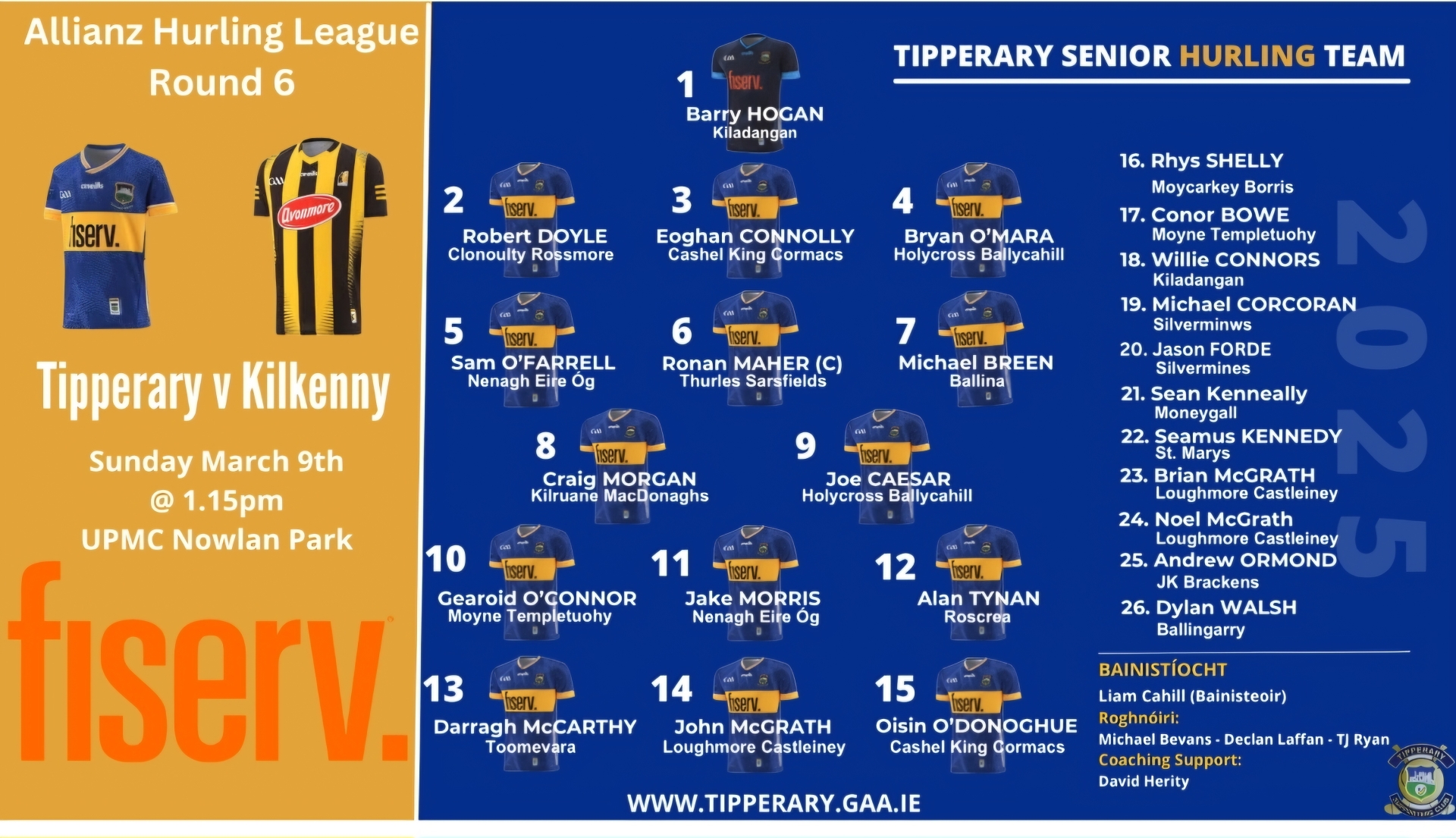 The Tipperary team to face Kilkenny in round 5 of the Allianz National Hurling League has been named.