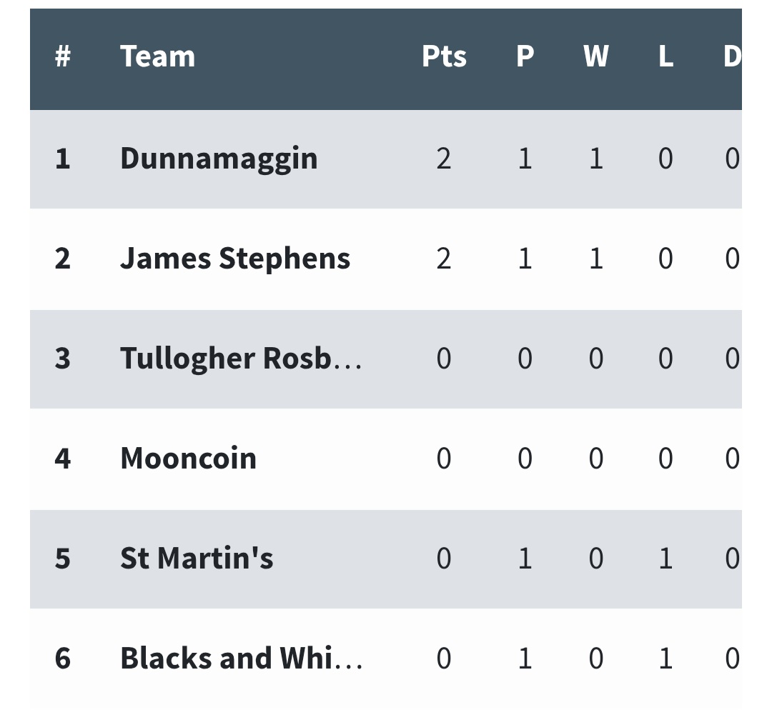 Meanwhile, Dunnamaggin had far too much in the locker for the Blacks & Whites, easing to a 2-23 to 0-11 win. A brace of Joe Fitzpatrick goals in either half opened the forward's goal scoring account for 2025. The Blacks & Whites failed to win a league game in the last campaign but did escape the drop in a memorable relegation semi-final defeat of Carrickshock. Can the returning Eddie Scally take them to the next level in 2025? Dunnamaggin will also be seeking to take another step up the ladder after a first round exit last season.