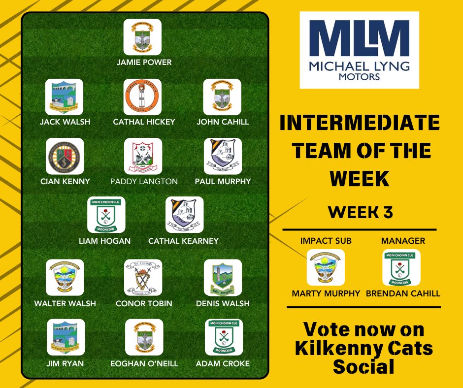 The Teams of the Week for the senior, intermediate and junior hurling leagues have been revealed. - SEE BELOW GRAPHICS