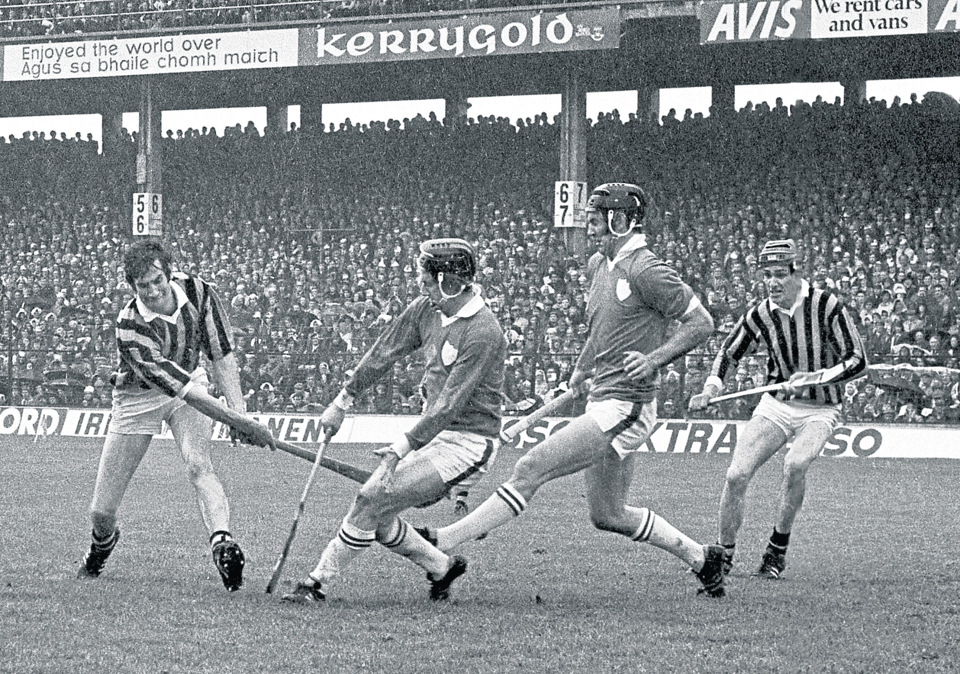 Kilkenny’s Mick Crotty, with team mate Jim Lynch on the extreme right, has his shot blocked by Limerick’s Éamonn Cregan and Pat Hartigan during the 1973 All-Ireland final in Croke Park. Picture: Connolly Collection/Sportsfile