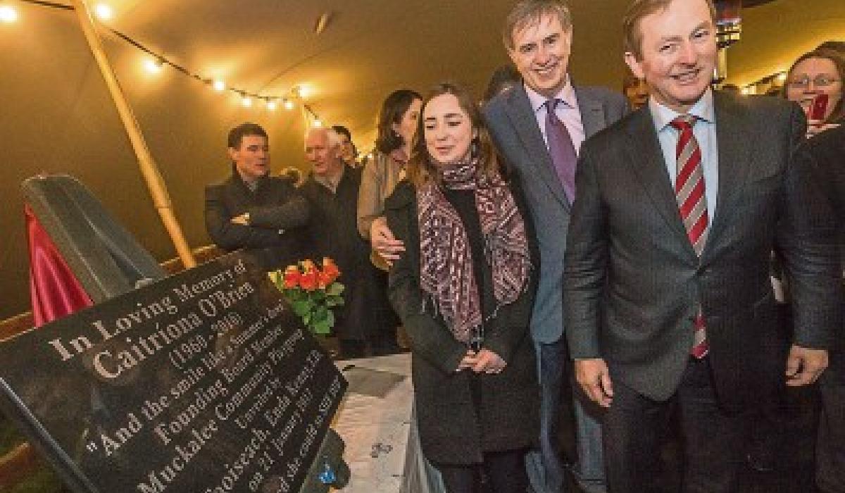 Taoiseach Enda Kenny who unveiled the plaque said he knew how special Caitriona was and added that it was a privilege to be present and to recognise the value of the contribution she made during her time as a teacher and as the chairperson of the board of the play school.