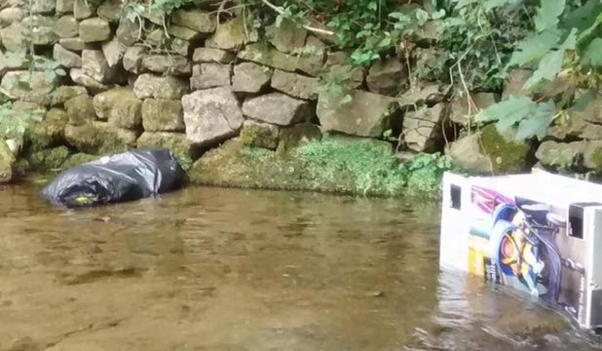 The items were a white cardboard box for a buggy – which had been taken out on left on the bank of the river - and a black sack full of nappies on the far side of the river.