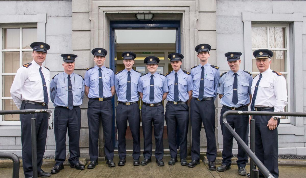 Supt Derek Hughes, Sgt Martin O'Halloran, Grd Gerard O'Leary, Grd Ashley Lowery, Grd Emmet O'Keeffe, Grd PJ Lawlor, Grd Cian O'Connor, Sgt Paul Donohoe and Chief Supt Dominic Hayes at Kilkenny Garda S