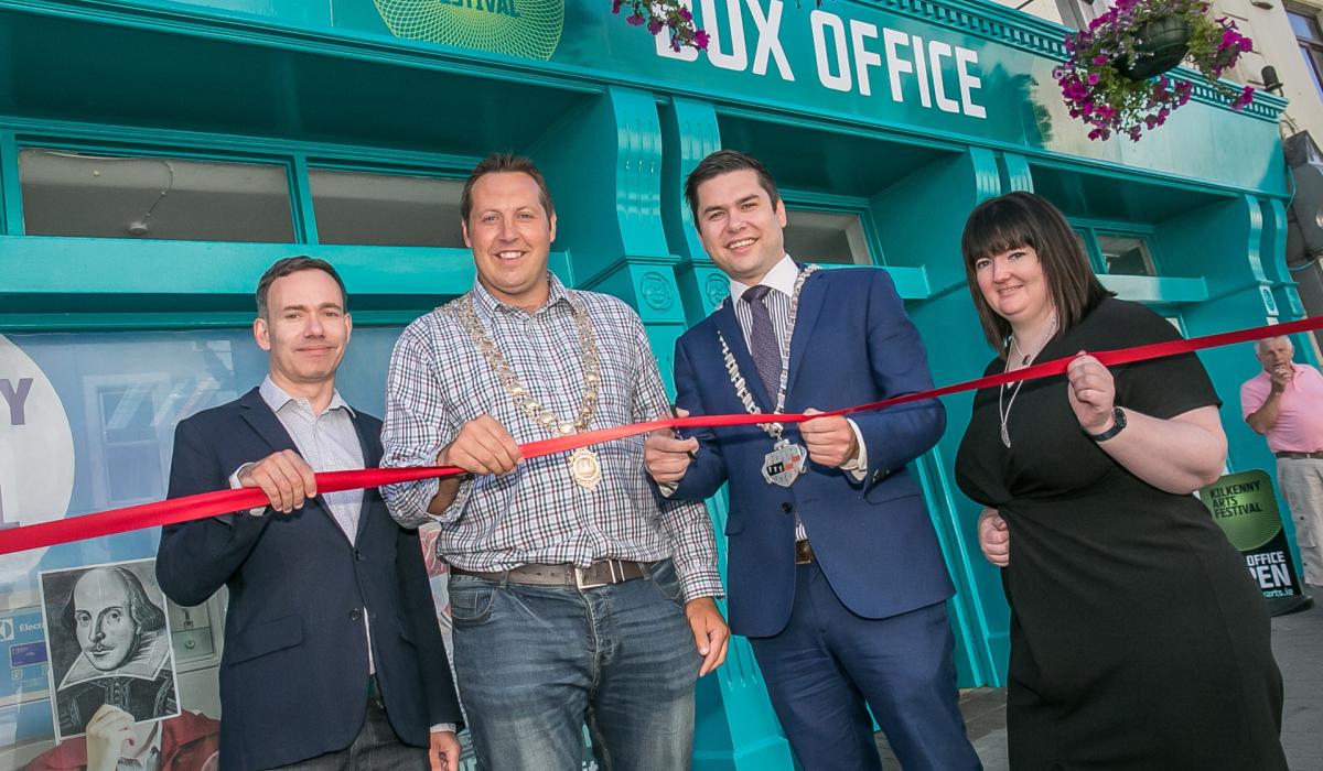 At the official opening of the Kilkenny Arts Festival box office were Eugene Downes, Cllr Andrew McGuinness, Cllr Peter ‘Chap’ Cleere, Mayor of Kilkenny and Céline Reilly, box office manager