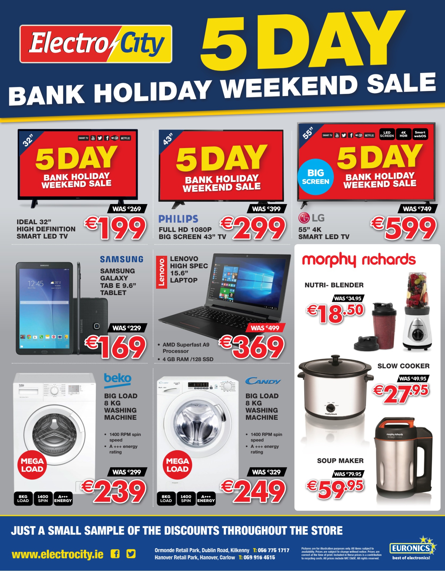 Special Offers on LG TV's, Philips TV's & Ideal TV's. Samsung Galaxy Tablet, Lenove Laptop, Beko Big Load Washing Machine, Candy Big Load Washing Machine. Murphy Richards Nutri Blender, Slow Cooker & Soup Maker.