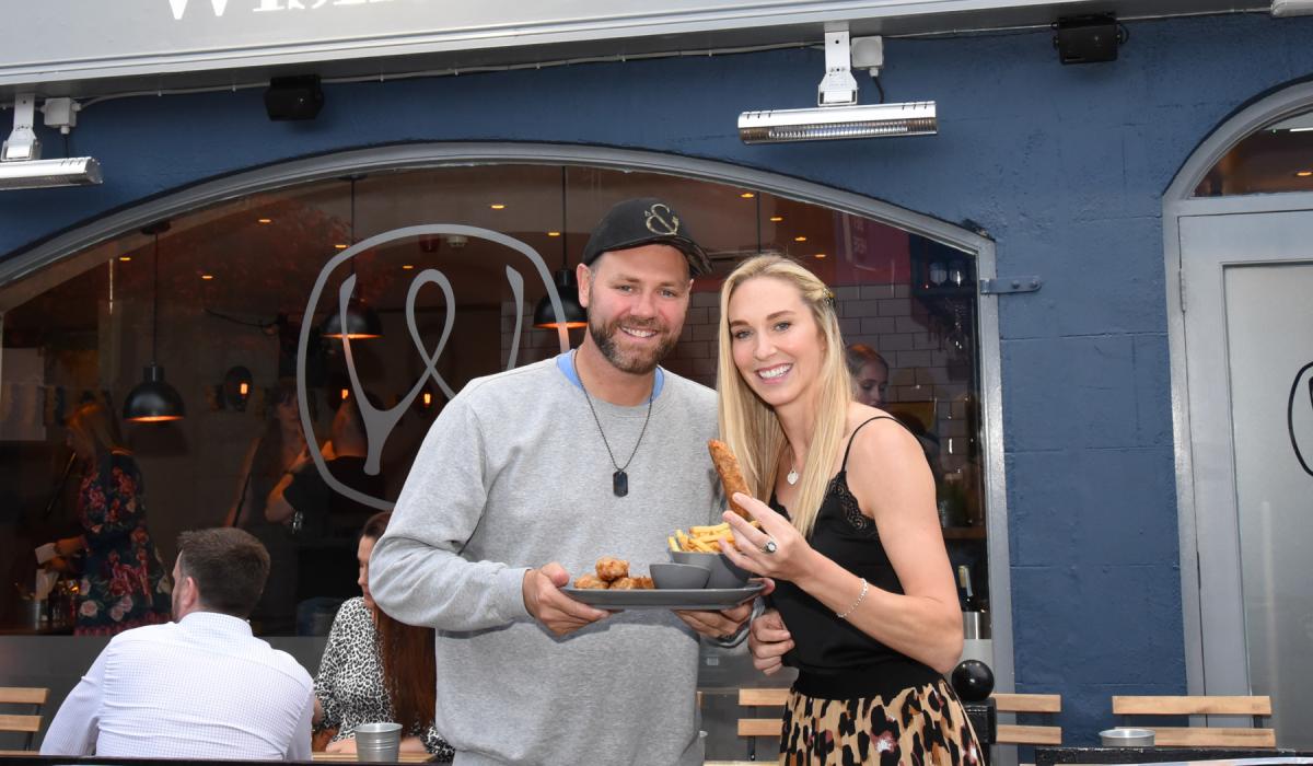 All smiles at new restaurant opening: Brian McFadden and girlfriend Danielle Parkinson enjoying the chicken wings at the launch of Wishbone on Kieran Street in Kilkenny