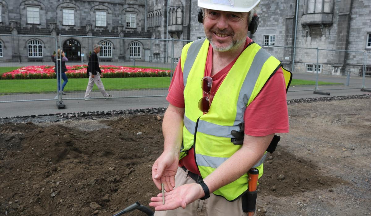 Dan Lenehan shows off a medieval tuning peg for a harp which was found as part of the excavation at Kilkenny Castle