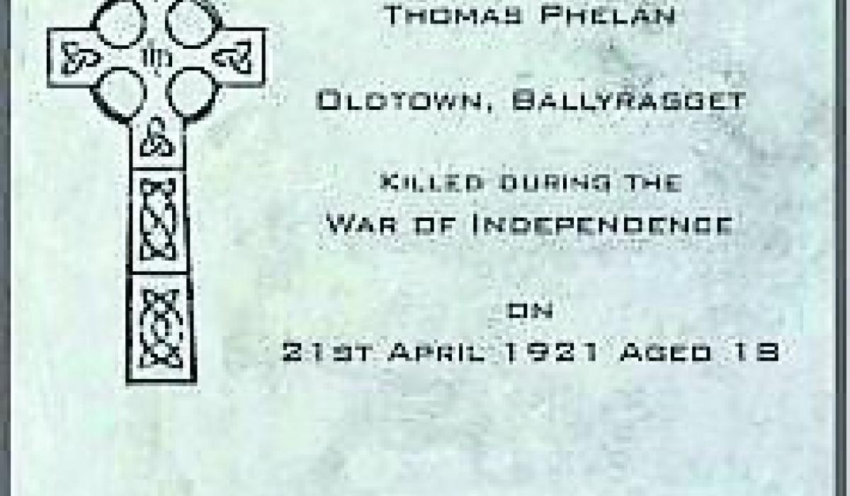 Two new plaques are being unveiled in Ballyragget in honour of Thomas Phelan, an 18-year-old gunned down by British soldiers near his home 100 years ago yesterday (April 21).