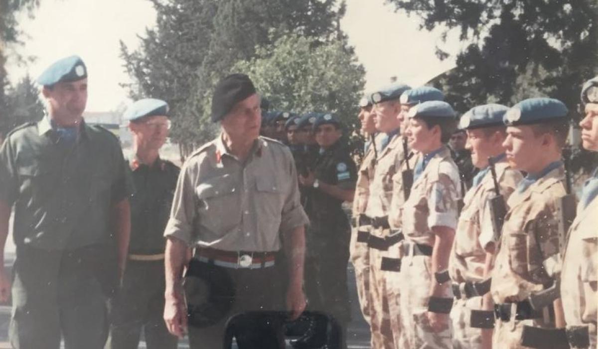 The picture was taken during a visit to the UNFICYP headquarters in Nicosia in 1993. Lt Col O’Carroll was a Captain at the time and the guard of honour comprised troops from the UK, Austria and Argentina.