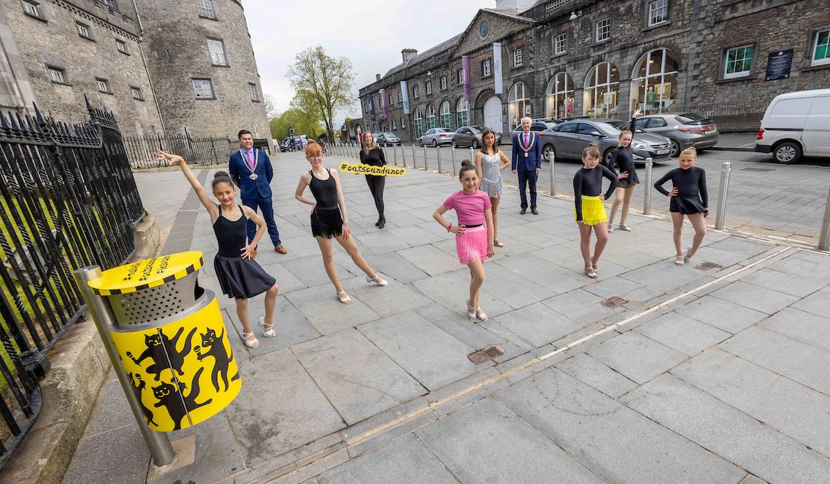 Cathaoirleach of Kilkenny County Council, Cllr. Andrew McGuinness, Mayor of Kilkenny, Cllr. John Coonan, Ann Mulrooney of Keep Kilkenny Beautiful Representative, with members of Vesper Dance Studio