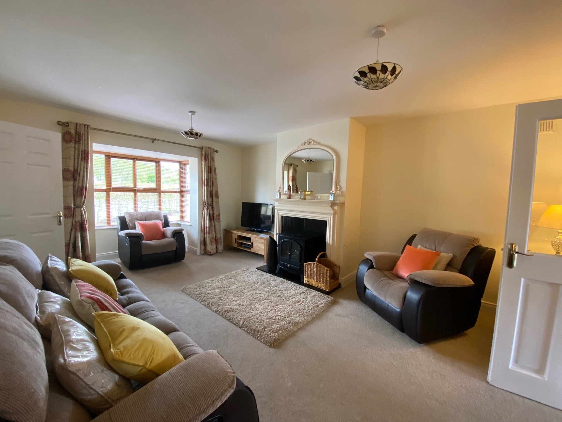 Moving through the property, the entrance hallway is bright and attractive and is finished with tiled a floor. There is good storage beneath stairs, while the alarm is accessed here.