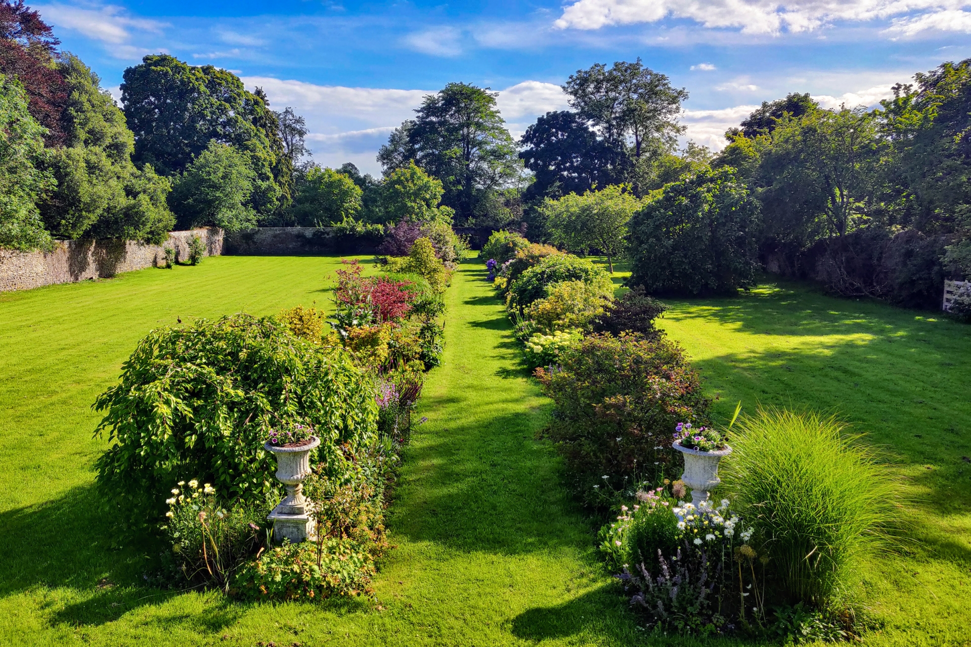 A winding avenue reaches the house, which is surrounded by mature planting, beautifully laid out formal walled gardens, and rambling walks.
