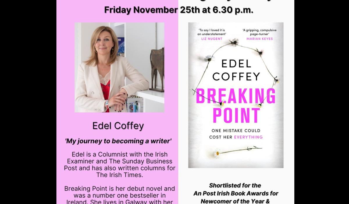 Author Edel Coffey will share her experience of becoming an author at Loughboy library on November 25