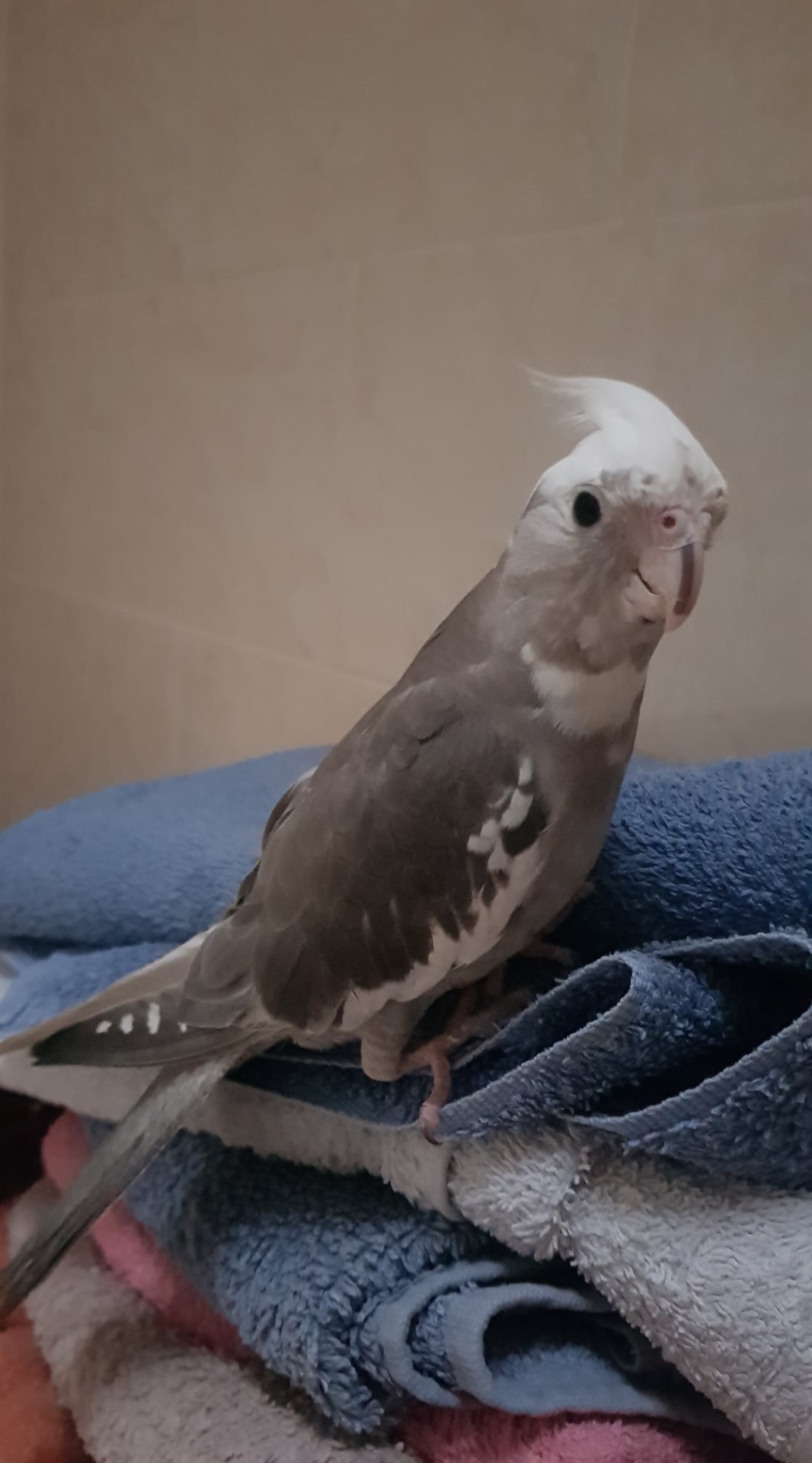 Michael's pet is a grey and white hand-reared cockatiel (see below):