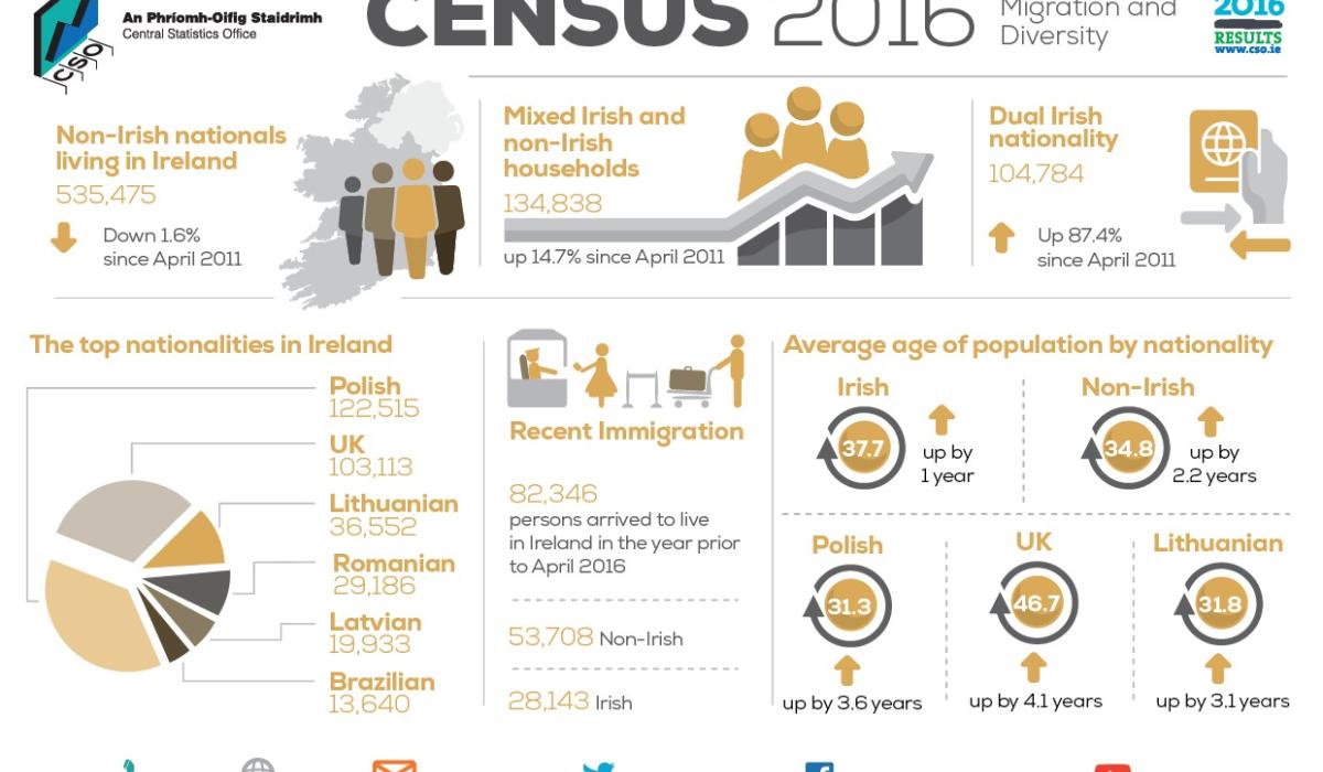"Non-Irish nationals and those with dual nationality are now well established in Irish society and communities throughout the country, and this report provides a wealth of information on their social and economic circumstances in April 2016."