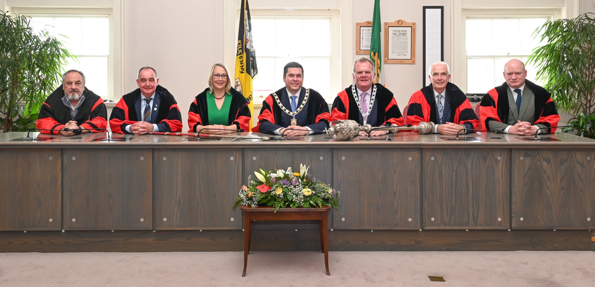 Mayor McGuinness told the members of the Kilkenny Municipal District and friends and family who watched on from the public gallery and online that it was ‘a huge personal honour’ to be elected mayor for the third time ‘not just because of my family’s history with this office, but because I know how important the position of mayor is in the hearts and minds of so many in this city’. He also thanked his proposer and seconder and his fellow elected members for putting their trust in him to carry out the task of mayor for the coming year.