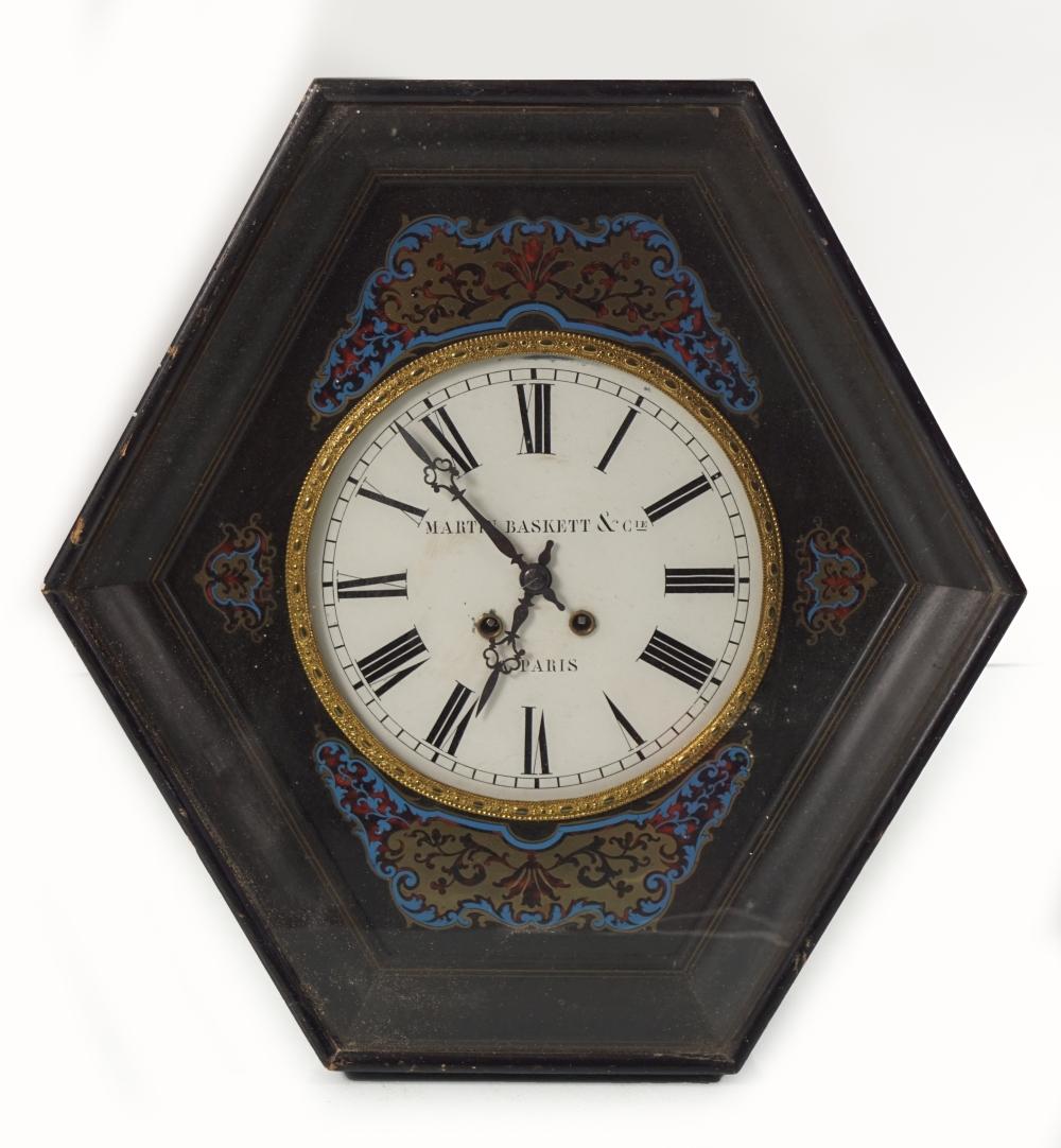Lot 345 - Brass and tortoise shell-cased wall clock made by Martin Basket & Cie, Paris