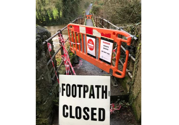 A footbridge over the Lingaun River in Kilkenny (near the Tipperary border) is closed until further notice as it's deemed unsafe to use.