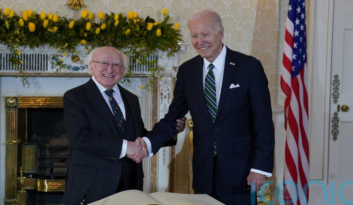 The red carpet was rolled out amid much fanfare as Joe Biden was officially welcomed to the Irish President’s house in Dublin on a day of engagements in the capital.