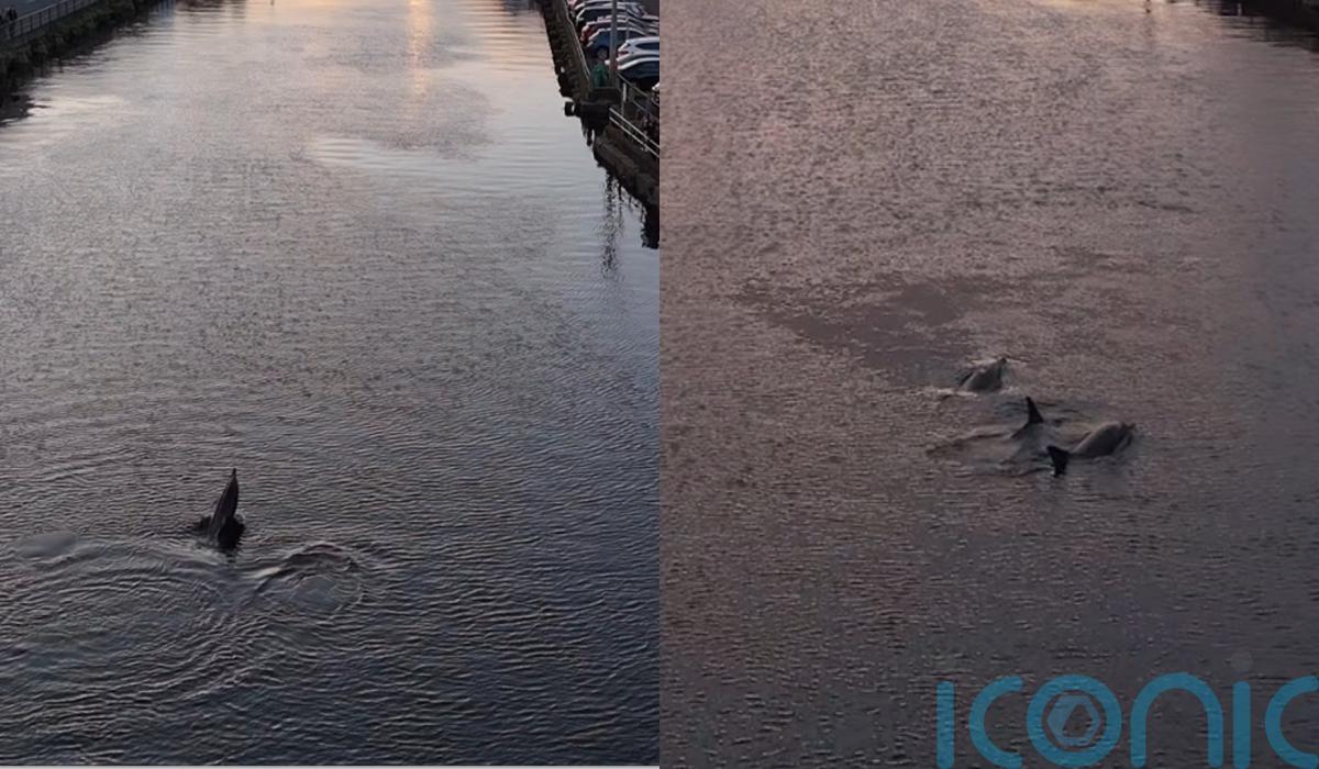 ‘Amazing sight’ as pod of dolphins swim down Cork river at sunset