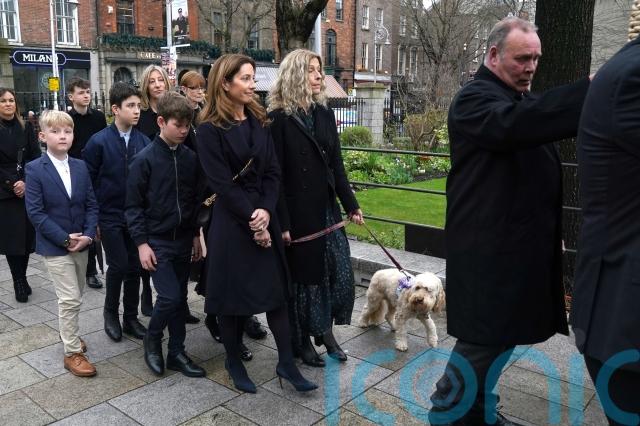 The journalist’s five grandchildren brought mementoes reflecting his life, including rosary beads he was given by singer Daniel O’Donnell.