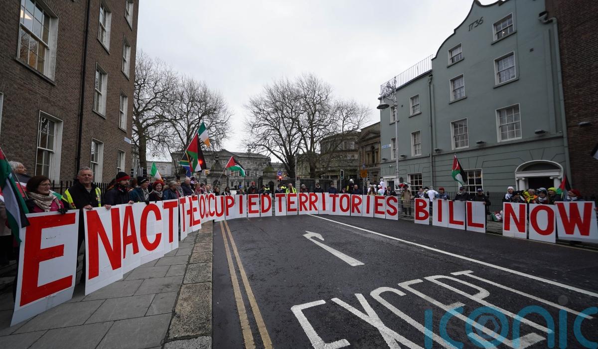 As the new TDs gathered in the Dail chamber for the first time, a pro-Palestine protest was held outside the gates of Leinster House calling on TDs to urgently pass a bill that would ban imports from illegal Israeli settlements on Palestinian land.