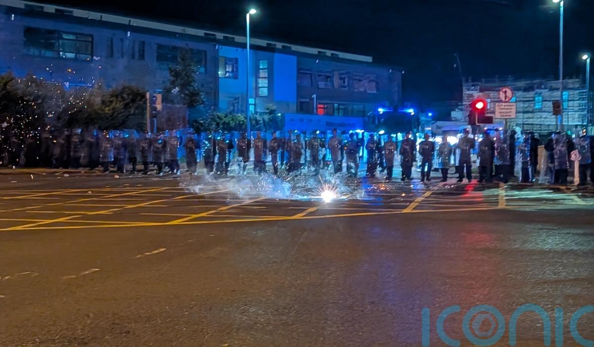 Tensions flared between Irish police and a crowd that had gathered outside the Citywest Hotel in Saggart where asylum seekers are being housed.