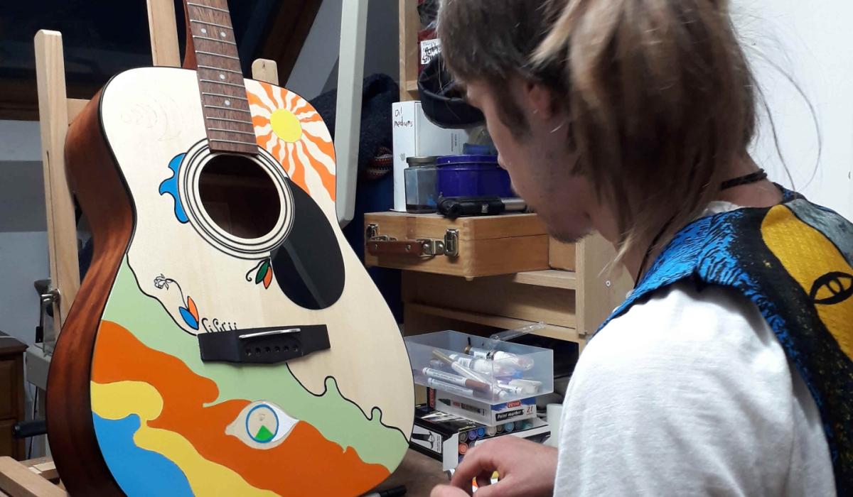 He also loves art, so when the lockdown, and he wasn’t distracted by the routine of school and homework, he began he started making and painting guitars.